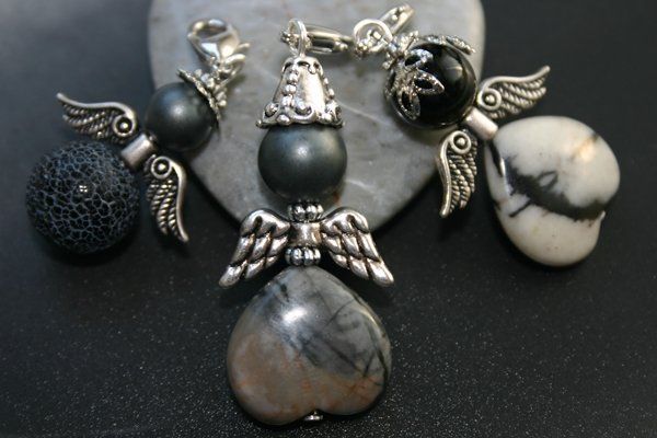 Die Materialien, aus denen die Engel gefertigt werden, reichen von schlichtem Metall bis hin zu 925er Silber.