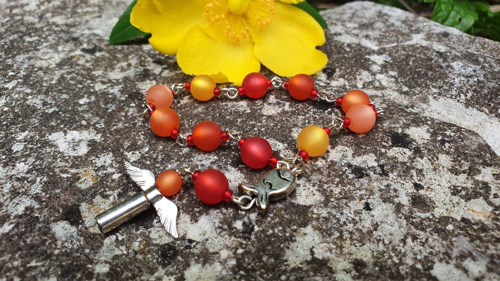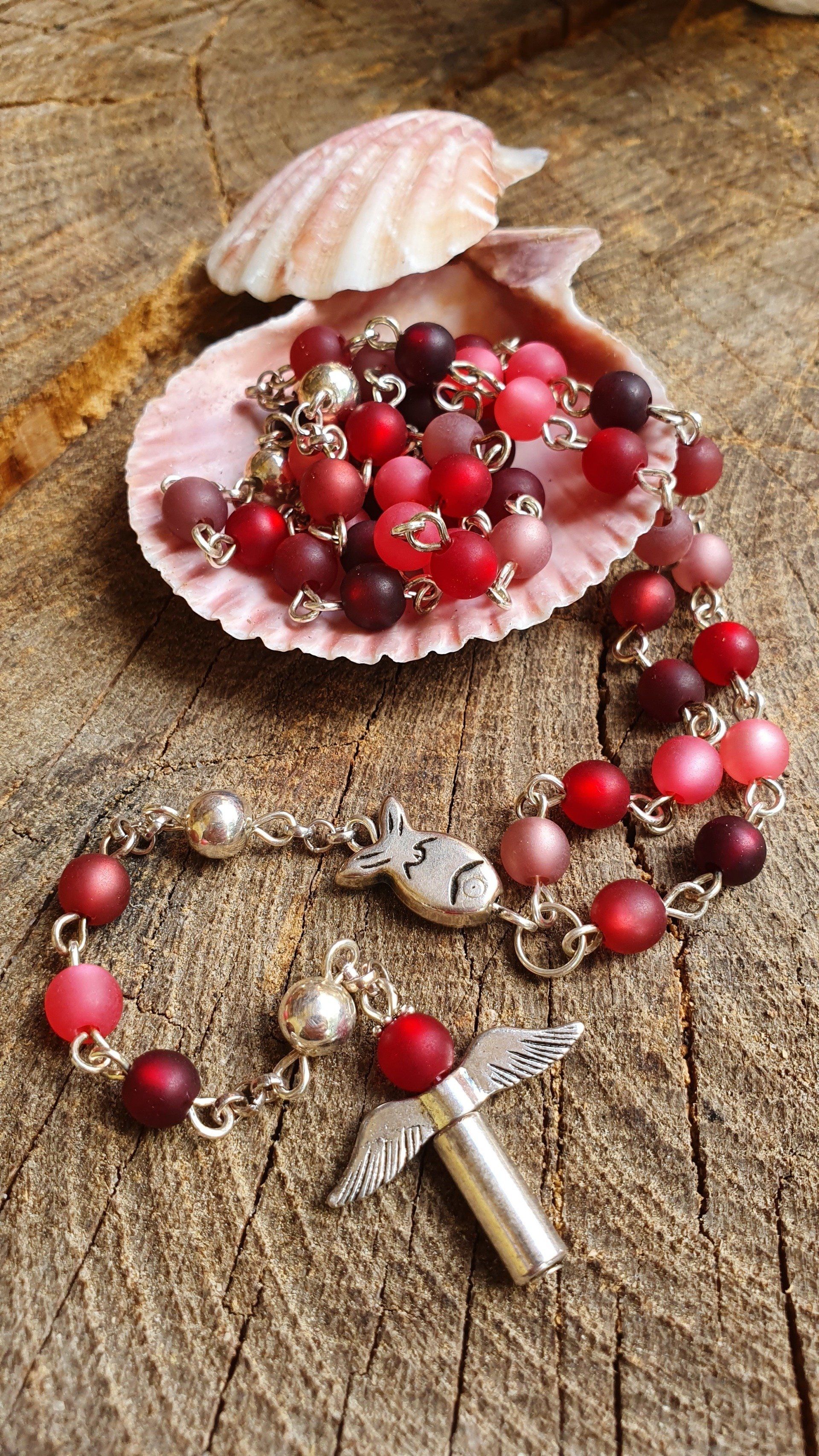 Mit Polaris-Perlen in Regenbogenfarben, mit kleinen Heilsteinen, Lava und Koralle oder mit handgefertigten Perlen aus duftenden Rosenblütenblättern. Sie selbst entscheiden, wie kostbar Ihr Rosenkranz werden darf und wählen ihre Lieblingsfarbe.